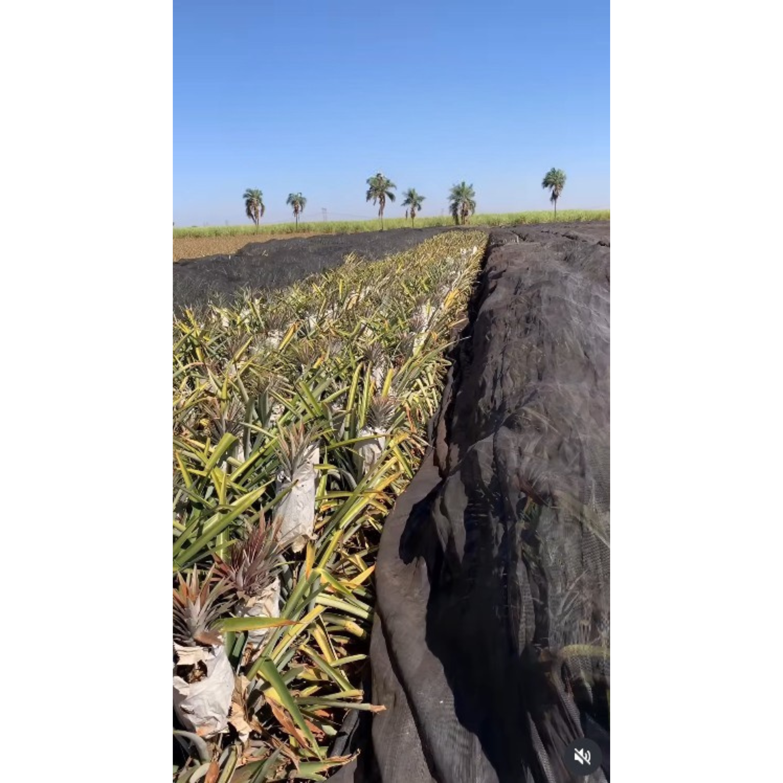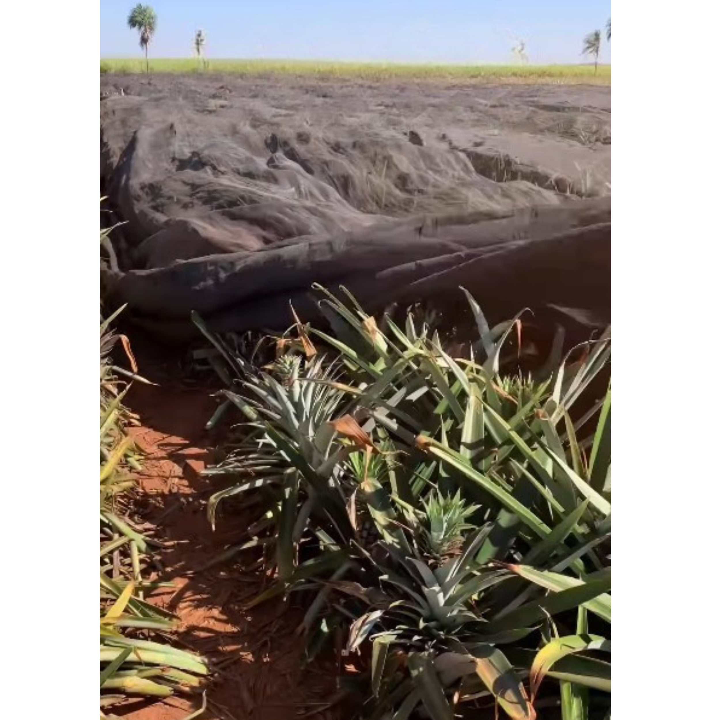Momento Certo: Aplique a tela sobre as fileiras de abacaxi entre 90 e 100 dias após a indução floral, cobrindo os frutos.