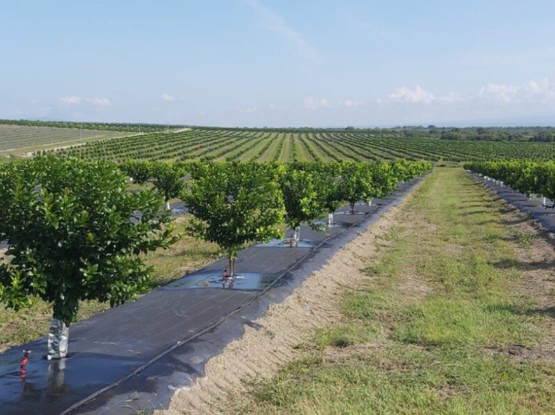 Os panos de ráfia ajudam a evitar que os grãos caiam no solo e se danifiquem, além de facilitar a organização e o transporte dos frutos colhidos.