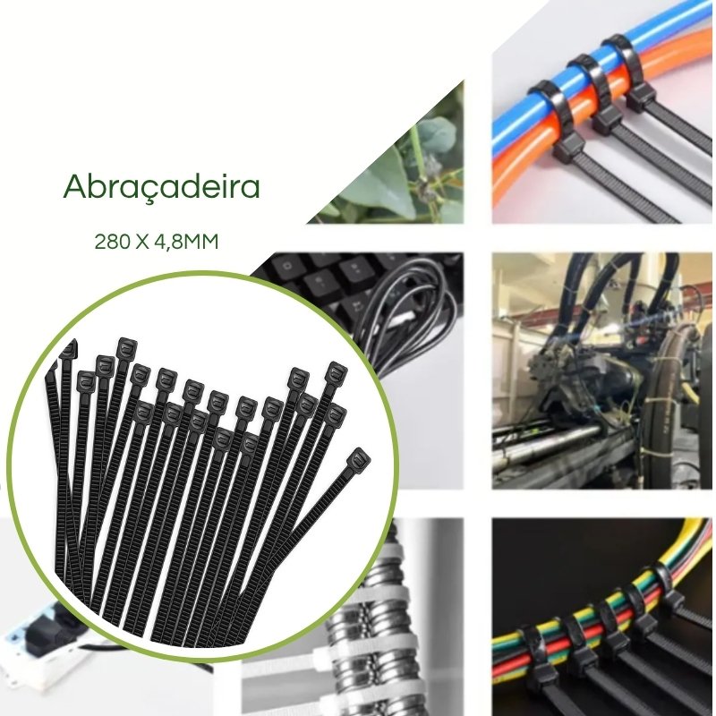 Abraçadeira utilizada para organizar e juntar cabos, fios acessórios e outras diversas finalidades e são adequados a uma vasta gama de aplicações.