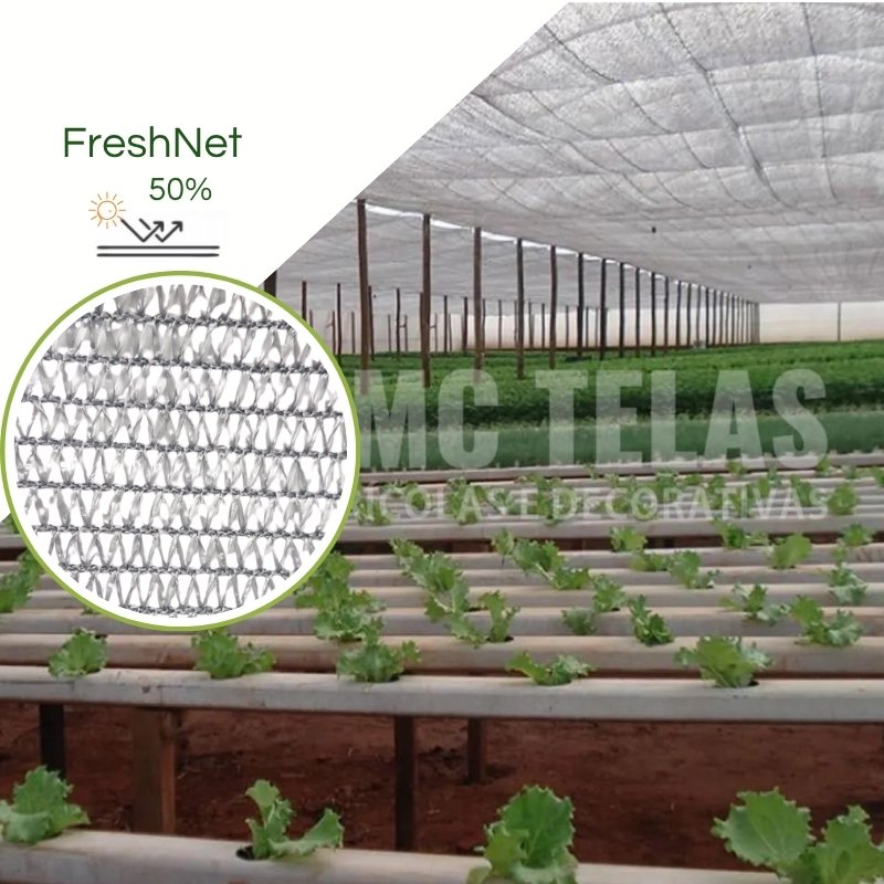 A Freshnet é desenvolvida com aditivos especiais, adaptado da indústria automobilística alemã, é uma revolucionária tecnologia de produção que permite a máxima diminuição de temperatura diurna. A propriedade de retenção das ondas longas também propicia manutenção da temperatura da folha, maior que a temperatura do ar à noite, evitando o orvalho e diminuindo os riscos de geada por perda de energia radiante. A Freshnet pode ser usada externamente ou internamente para controle de temperatura diurna ou noturna em estufas e também em telados.